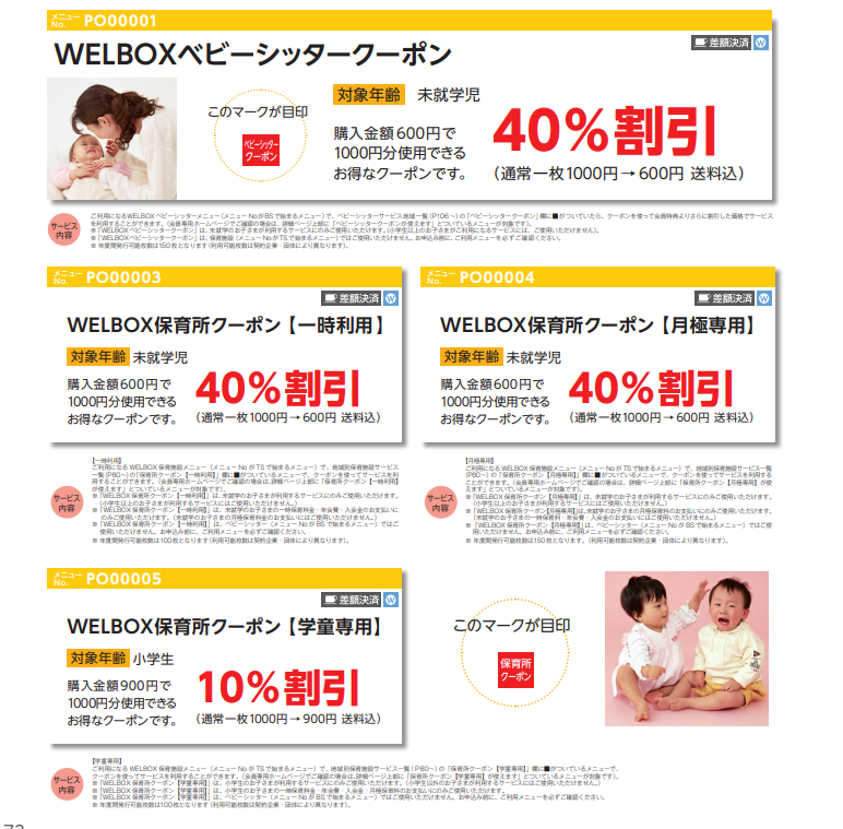 WELBOXの育児クーポン(ベビーシッター、保育所、学童)と、