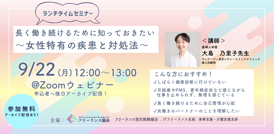 | プロフェッショナル&パラレルキャリア・フリーランス協会事務局のたくまです。 恥ずかしながら、会社員の時、給与明細の見方をよくわかっておりませんでした。手取りの額面だけを見て「なんかすごい引かれるやん」と思っておりましたが、いろんな保険料を会社が負担してくれてたんですね…フリーランスになって、ようやく知りました。 失って初めて気がつくすごさ、でも働き方の自由を選んだわけだしな…いや保険・保障とトレードオフみたいに思っているけど、はたしてそうなのか。 会社員かフリーランスか2択ではなくてグラデーションになっているし、そもそも働き方のバリエーションはもっと増えるかもしれない。 令和時代の働き方に合わせて、保険・保障の最適解も考えていきたいです。 さて、本日のフリーランスアンケートです。 ![]() ![]() 注目ニュース ![]() 【回答募集】社会保険に関する意識調査 フリーランスとして活動する上で、社会保険についてどのようにお考えでしょうか。 フリーランス協会では「フリーランス白書2021」で社会保障に対する課題感について、自主調査を実施しました。 調査時点から約5年が経過し、社会情勢も大きく変化した今、あなたがどのようにお感じになっているか、率直なご意見をお寄せください。 調査結果は、毎年発行している「フリーランス白書」の2026年版として公表され、政府・関係省庁への政策提言や、当協会の活動方針策定及び新サービス開発の検討に役立てられます。 小さな声を大きな声へ。 ぜひあなたの声を届けてください! 🎁抽選で50名様にAmazonギフト券1000円分を贈呈 アンケート回答はこちらから 【調査対象】日本国内で働いているフリーランス (個人事業主、法人経営者、委託就労者、すきまワーカー、副業従事者を含む) 【所要時間目安】5分 【回答期限】2025年9月30日(火)23:59 ![]() みんちょぼ ~みんなで帳簿をつける会~ 9月18日(木)13:00〜@東京、オンライン ≪東京・市ヶ谷会場≫ その場でスッキリ!直接聞ける相談&作業会~みんちょぼ特別編 ≪オンライン・zoom開催≫ みんちょぼ ~みんなで帳簿をつける会~ vol.11 9月、今年の3分の2が過ぎ、そろそろ確定申告の準備も考えたい頃です。 リアル会場では(一社)東京青色申告会連合会のご協力のもと、帳簿付けや確定申告について、専門家へ対面で相談いただくことができます。 恒例のオンラインみんちょぼも同日開催です! オンラインの個別相談は9月7日締切です。 個別相談なしのご参加は、8日以降もお申込み可です。 また市ヶ谷会場での個別相談は引き続き受付中です! 年が明けてからの開催時は大変混み合いますので、相談するなら今の時期がおすすめです! ![]() フリーランス・副業をめぐる動き アマゾン配達員は「労働者」か「個人事業主」か? プラットフォーム業界の“働き方”を左右する訴訟の行方|弁護士JPニュース アマゾンの下請け配達会社と業務委託契約を締結していた配達員が、契約解除の撤回や残業代請求を求めて配送会社を訴えた件で、アプリを介して仕事を請けるプラットフォームワーカーの労働者性が裁判所によって認められるかどうか、注目が集まっています。 裁判の判決次第では「業務委託」とされるプラットフォーム・ワーカーの法的地位や労働環境に大きな影響を与える可能性があります。 アラフィフ社員の「ジョブ・クラフティング」はなぜ必要なのか? キャリア後半の停滞感を打破する、主体的な仕事づくりが組織の未来を照らす|日本の人事部 仕事で停滞感を抱きやすい45~54歳のアラフィフ世代にとって参考となりそうな「ジョブ・クラフティング」という考え方についての記事です。仕事の「手触り感」を取り戻し、主体的に働くことでやりがいを再び得られ、また若手の模範となり、シニア期への備えや年齢包摂の文化にもつながるとのこと。 会社員からセカンドキャリアを模索中の方はもちろん、フリーランスとしてもこの先のキャリアを考える際に取り入れられそうです。 ![]() 新しい働き方応援メディア「フリパラ」 ![]() 「ここまで必死に働く必要はあるのか」5カ月のプチ移住で経験した「地味だけれど確かな変化」 フリーランス漫画家・かんべみのりさんの海外プチ移住体験記。第2回目は、海外で暮らし、働いてわかった想定外のあれこれを紹介。プノンペンでの暮らしは、これまでがむしゃらに働いてきたかんべさんの価値観を大きく揺さぶったようです。 ![]() 「別世界」を持つと人生が楽しくなる | 団地アンバサダー・けんちんさん【偏愛マニア #15】 村田あやこの偏愛マニア探訪記、今回ご登場いただいたのは、団地アンバサダーのけんちんさん。会社員でありながら、友人・知人200人を団地に送り込むほどの団地愛の持ち主です。さらに、ドムドムハンバーガーや電気風呂まで…!? 広がり続ける偏愛ワールド、その源を探りました! ![]() 8月によく読まれた記事 ▶︎新聞社を退職後、バルセロナで豆腐屋に。「忙しい人は老け込まない」 ▶︎品種と