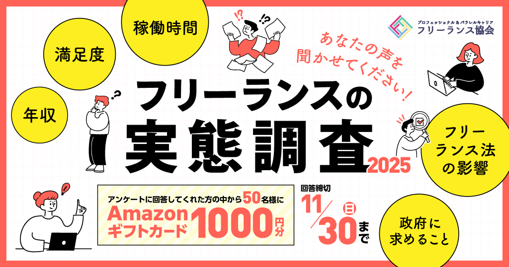 【回答募集】フリーランス実態調査2025~満足度・フリーランス法・取引実態など