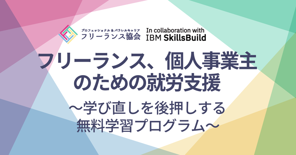 こうした背景を踏まえ、フリーランス協会は、18歳以上のすべての会員(無料・一般)を対象に、オンライン学習プログラム「IBM SkillsBuild」と「Udemy for IBM SkillsBuild」を無料で提供し、フリーランスのリスキリングを支援しています。