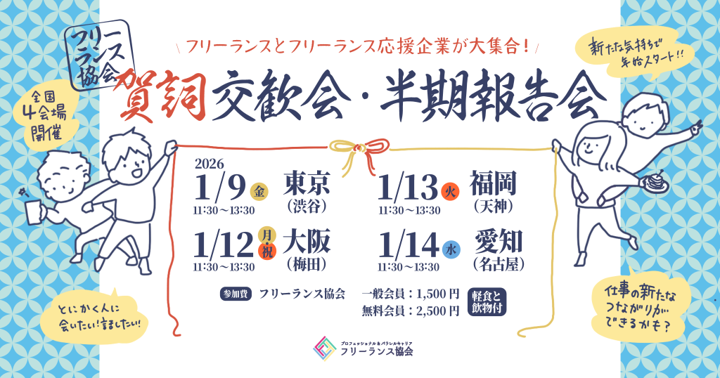 【2026年1月開催】東京・大阪・福岡・愛知で参加者募集!フリーランス賀詞交歓会