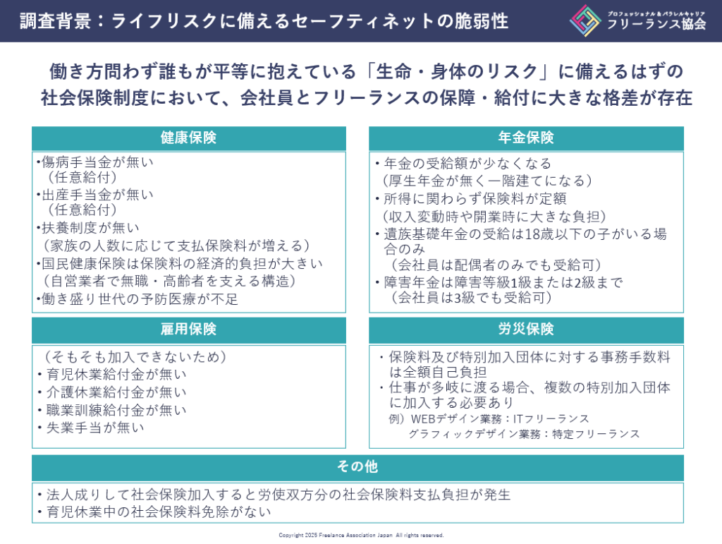 ⼀般社団法⼈フリーランス協会「フリーランスの社会保険に関する意識調査2025」