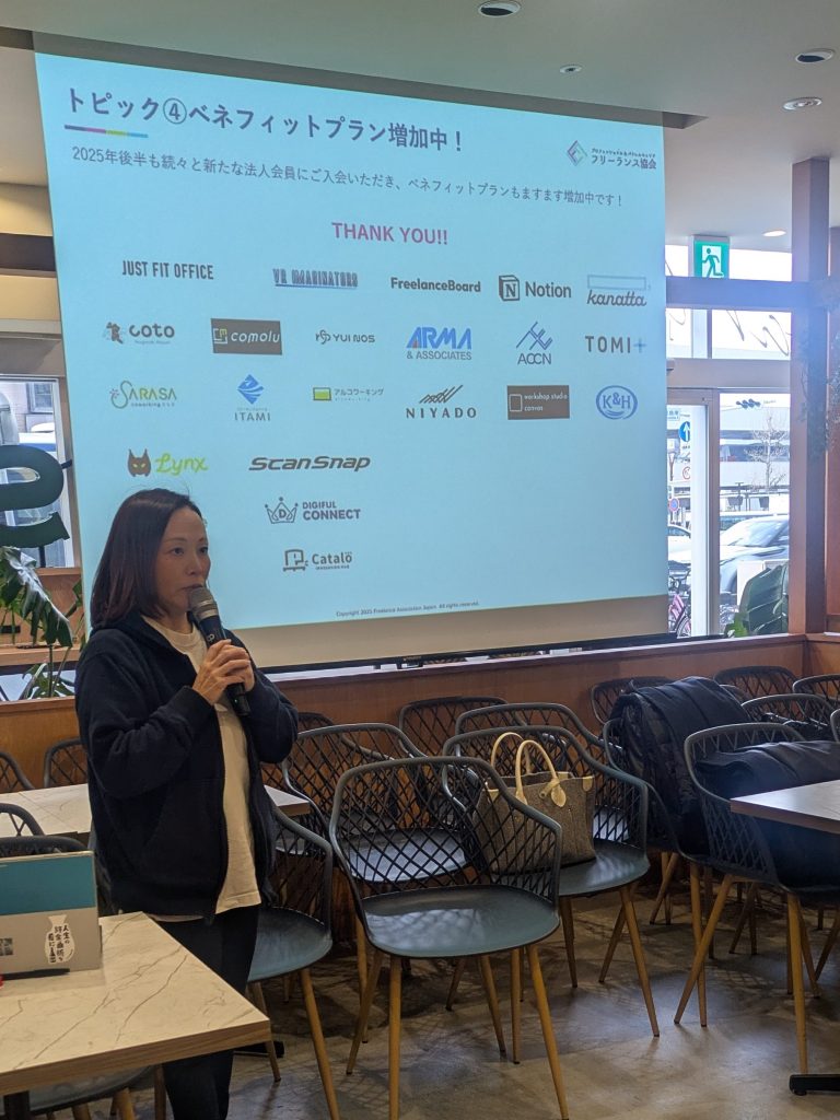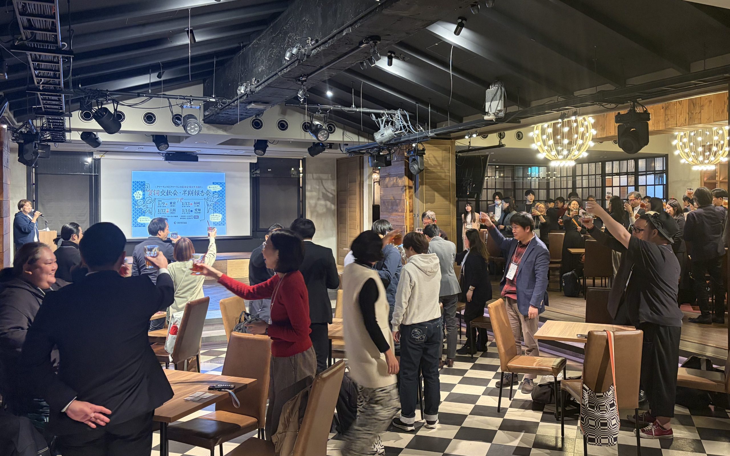 1月9日から14日にかけて、東京、大阪、福岡、名古屋の4か所で賀詞交歓会を開催いたしました。各会の前半は2025年下半期のフリーランス協会の活動報告を行い、後半は懇親会で、大いに盛り上がっていただきました。