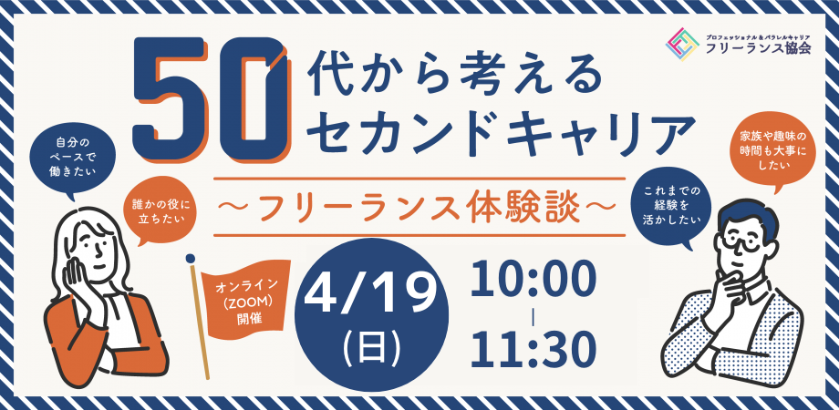 【4/19開催】50代から考えるセカンドキャリア~フリーランス体験談共有会~