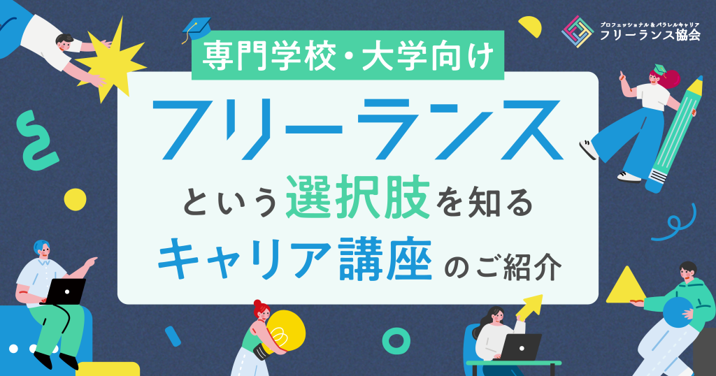 多様な働き方が広がる中で、職種によっては、ファーストキャリアとしてフリーランスを選択するケースも見られます。また、就職後に副業・兼業などで自律的なキャリアを歩む人も多くいます。本講座では、フリーランスという働き方に興味を持つ学生や、将来的に選択肢として検討している学生に向けて、「フリーランスの実態」「知っておきたい基礎知識」などをお伝えします。本講座はフリーランスを「推奨」する講座ではありません。これから社会で活躍する学生が、自律的なキャリアを築いていくために、将来に向けて役立つ情報をお伝えする講座です。