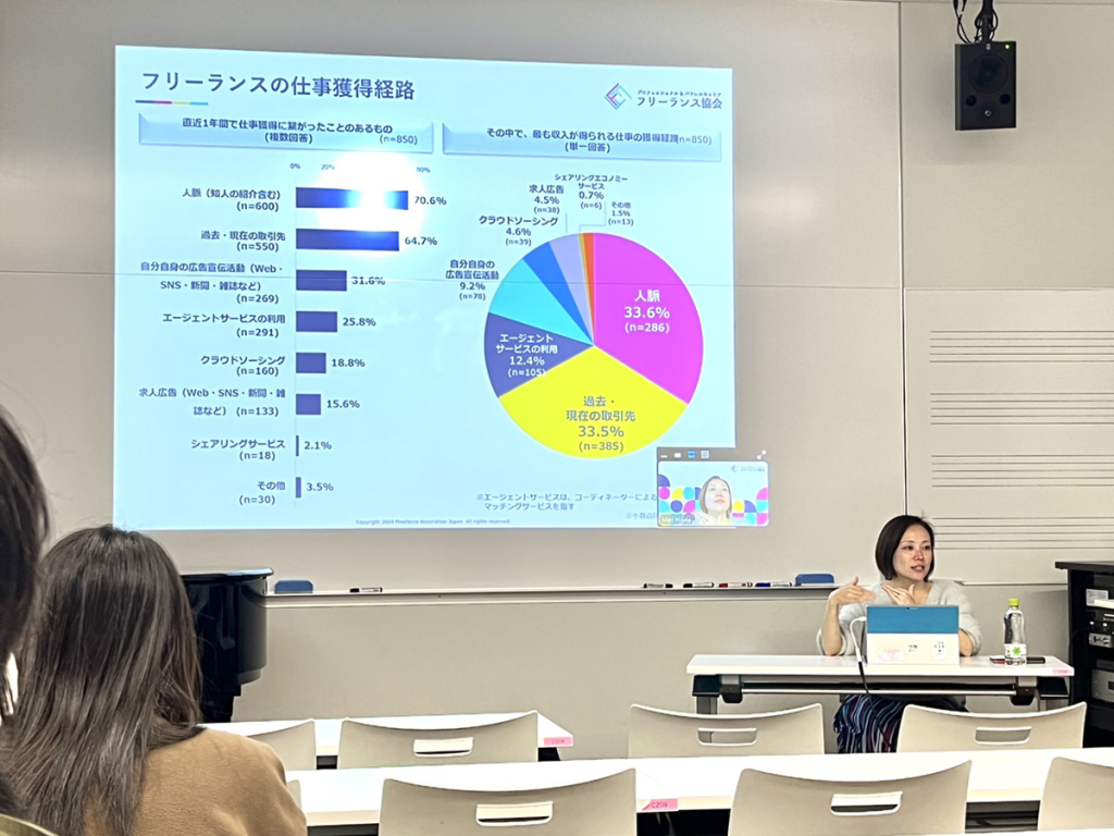 ・フリーランスになる上で必要なこと、例えば契約や相談場所などを知れてよかったです。自分は就職ですが、いつかフリーランスになりたいと思うことがあると思うため、参考としてまた調べたり思い返したりしたいと思います。