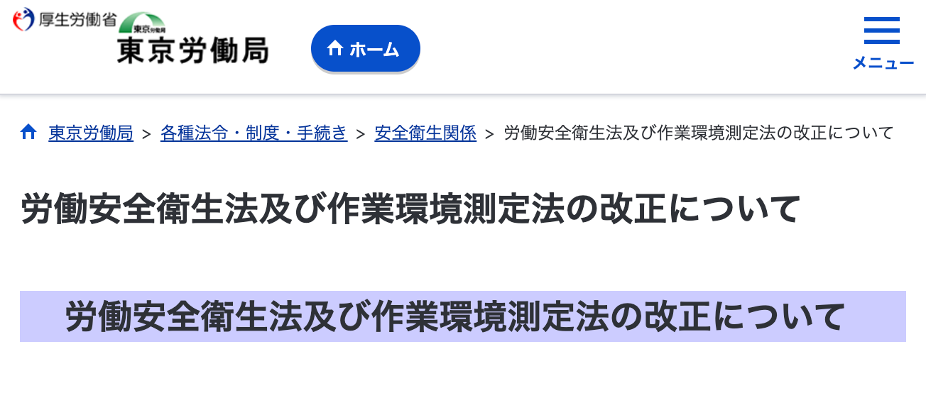 労働安全衛生法及び作業環境測定法改正について(東京労働局労働基準監督署より)